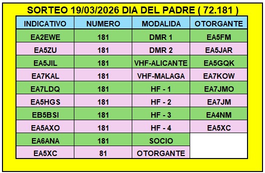 Desde la Asociación Cultural Radioaficionados Costa Blanca (ACRACB) queremos felicitar a los 10 afortunados ganadores de nuestro gran sorteo del Día del Padre 2026 🎁